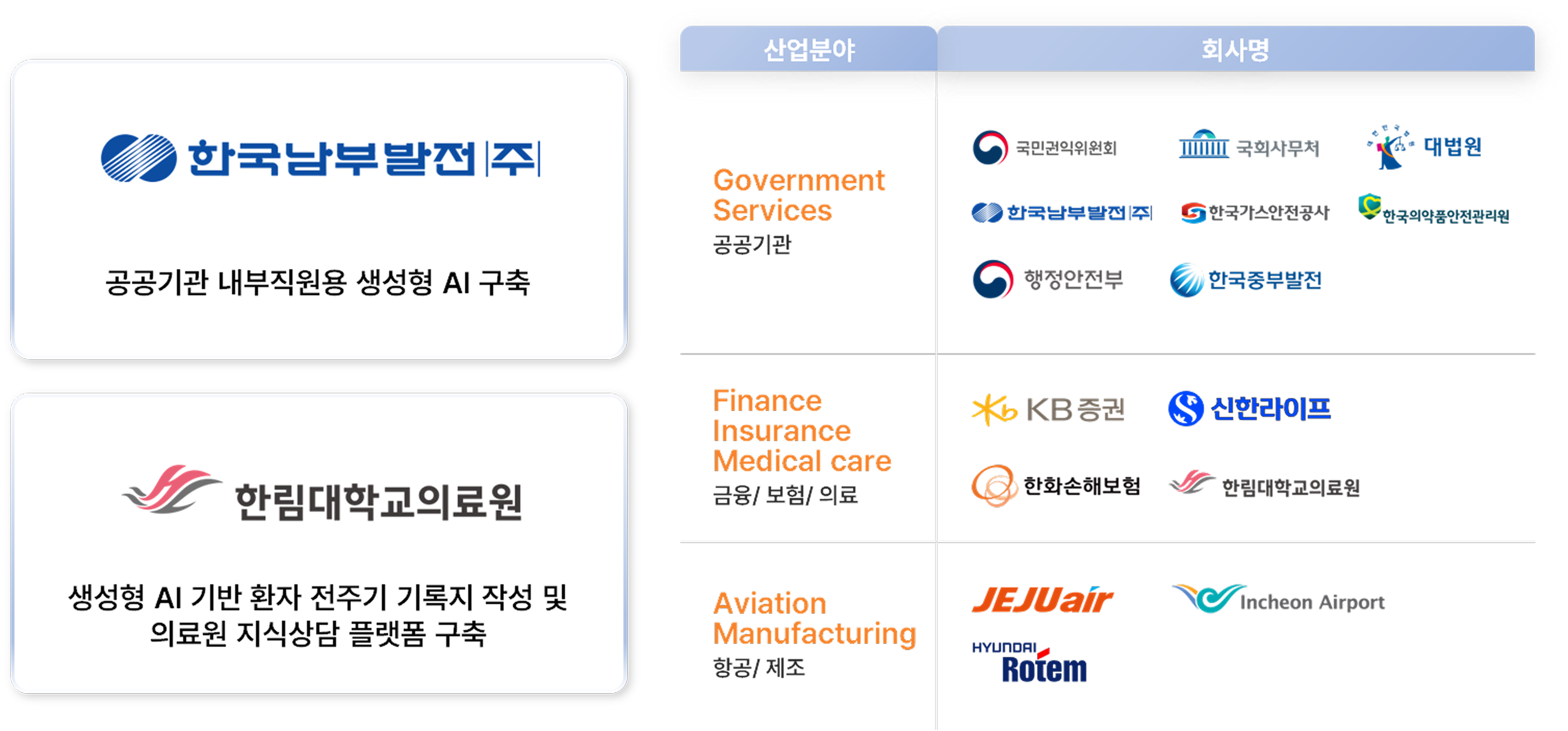 한국남부발전, 한림대학교의료원 등 여러 기관에서 코난 LLM을 도입하여 AI 기반 업무혁신을 추진하고 있습니다.